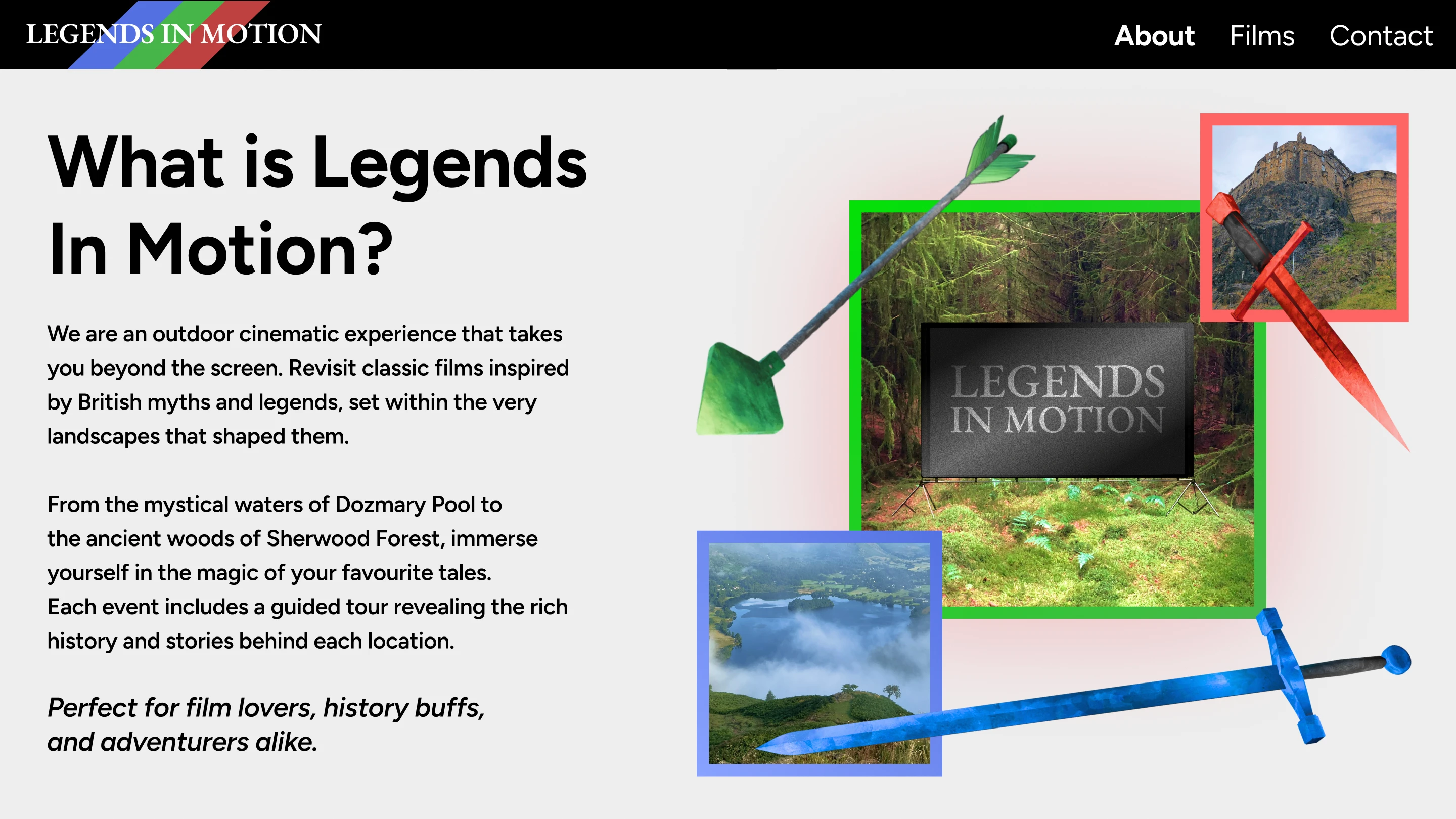Legends in Motion is a outdoor cinema experience which takes place at iconic British landmarks. The historic weapons were modelled, textured and animated in Blender.